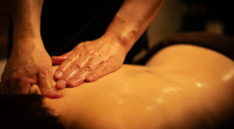 ホットストーンオイルマッサージは、50〜60℃に温めた玄武岩(火山岩)を身体に置き、またはオイルを用いて滑らせるマッサージ技術です。遠赤外線効果で身体の芯から温め、血行促進、冷え性改善、筋肉のコリ解消、深いリラクゼーション効果が期待できます